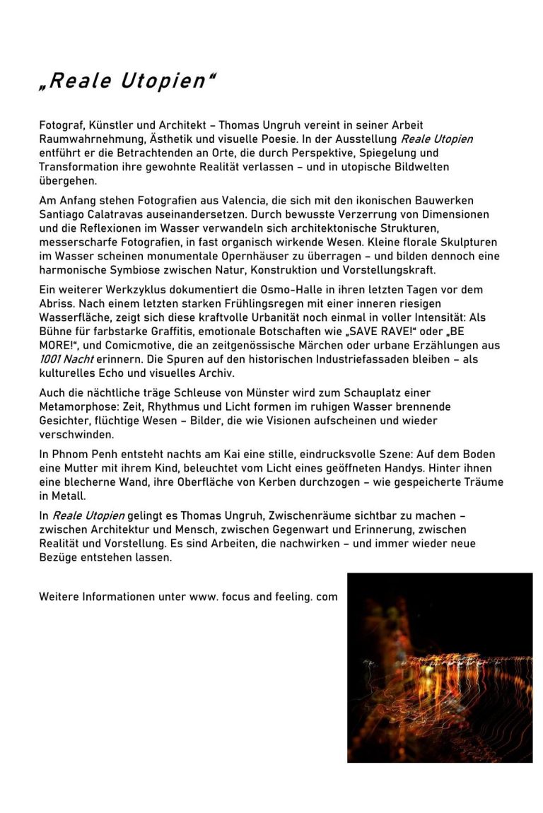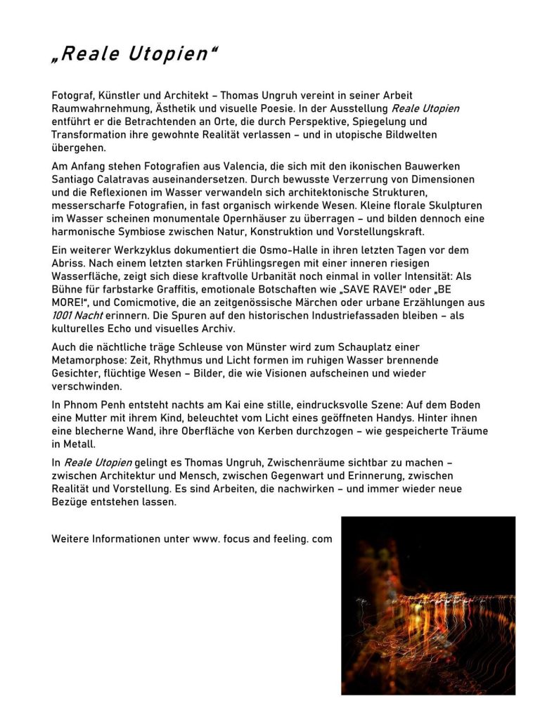Die künstlerische Arbeiten von TU sind gekennzeichnet durch ein weit gefächertes Spektrum an großformatigen, installativen und performativen Werken, die oft integrativ sind und das Mitwirken der Erleber erfordern. Gesellschaftliche und politische, aber auch interkulturelle, psychologische Prozesse werden wirksam. Parallelen, Abhängigkeiten und Wechselwirkungen zwischen äußeren Bedingungen, und innerer persönlicher Wahrnehmung werden in ihrem jeweiligen, häufig problematischen Spannungsfeld thematisiert. Der technische Fortschritt wirkt ebenso wie die politische Entwicklung auf das Individuum, was sich angesichts des rasanten Tempos immer neu positionieren muss, einerseits um sich zu wappnen und bei sich zu bleiben, andererseits um als soziales Wesen weiterzuleben. Der Mensch in Auseinandersetzung mit den an ihn gestellten Anforderungen, in seiner Ambivalenz zwischen Souveränität und Hilflosigkeit, zwischen Tun und Erleiden, zwischen Vergangenheit und Zukunft ist zentrales Thema seiner Arbeiten.